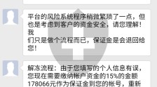 聊了一段时间这个自称自己姐夫在交易所上班 会从里面给他流出数据 给我发了一张二维码 让我也进去看看 然后一步步告诉我怎么操作 一点点引诱我充金 一开始一百元 第二次两千元 第三次三万元 第三次不给提现 让充值两万六保证金 充值后又不给提现 让交一万七千多晋升会员 明显的骗局 现在钱也退不回去 也提不出来 此人还诱导我下载各种各样的贷款app 有事客服和他说得话如出一辙 就像是商量好准备好的欺诈