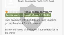 EURO PRIME通过从他的帐户中窃取 14,400 美元来欺骗客户。客户声称他永远不会收回他的钱。