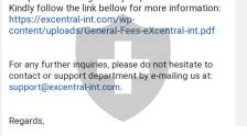 8/17我在Youtube连结到一个投资平台,对方立即发一封E-mail给你,并电话与你联系(来自香港),说只要求存入最低交易金额250美元开户就可以投资,我不疑有他,反正被骗也只有250美元。 8/18投入之後,就有了一位中文发音不甚标准的西班牙籍经理人(Mahmut K)打电话给你,他人在土耳其,首先说要投资必须先投入8000美元,8/19经理人并以ZOOM与你连线,先以一些网路新闻分析世界局势,再指示你用信用卡刷8000美元入金,接着带你投资差价合约的外汇,一开始没有甚麽获利,8/23经理人说需要再投入5000美元才能有较大的获利,要我相信他的专业,这些钱很快就会赚回来,我依指示再刷信用卡5000美元,他接着带我投资外汇、原油等商品,8/24让我获利10000美元,当天Mahmut K又说再加10000美元可以让我升级为黄金帐户,这样可以在提款及手续费等更加方便,可是我的信用卡的额度已满,Mahmut K说你可以打电话请银行提高额度,我依指示打电话给银行,银行只能将额度再提高7000美元,Mahmut K说可以,8/24也让我升级为黄金帐户,帐户余额就来到30000美元,接下来Mahmut K再电话指示我操作,让我的帐户在8/25累计达41800美元,既然金额已翻倍,我就想先提领出我投入的本金20250美元,但Mahmut K说你先提领1000美元试试,所以8/25只让我提领1000美元。8/26经理人Mahmut K突然很紧急来电,要我再存入10000美元,不然会发生很麻烦的事,甚至有点恳求我帮忙,他要我相信他的专业,他一定会帮我把这些钱赚回来,8/27我用另一张信用卡刷了10000美元,接着Mahmut K每天以电话指示我操作,到了8/30,我的帐户余额来到70568美元,可是这几天网路常出现连结失败的问题,甚至出现「尊敬的访客,很抱歉,我们不接受来自TAIWAN的交易者」,我与Mahmut K联系(E-mail),Mahmut K说这是亚洲地区的主机出问题,正逐步修复中,接着带我投资非常多的外汇商品,且下注额度极高,止盈金额也订得很高,我跟Mahmut K说我只希望稳稳操作,有赚就好不需要赚太多,但他一再强调要我相信他的专业,就如他的指示操作。结果8/31出现大量亏损,其中有一笔USDZAR的投资亏了34300美元,当天下午Mahmut K又紧急来电,说保证金不足,必须即刻再存入10000美元,不然我所有的钱都会不见,我说我已经没有钱了,Mahmut K不断催逼,要我先1000美元逐笔刷刷看,赶快补足保证金,我又刷了3次1000美元,信用卡就爆了,Mahmut K与他的主管要我打电话与银行协商增加额度,我实在已经都耗尽了,不能再刷了,Mahmut K与他的主管就说这样他们也帮不了忙,到时候归零他们也没办法,电话就挂了。 两个星期,一场梦就碎了,下个月(9月)所刷的金额33250美元必须缴纳,真不知该如何是好?最重要的是求助无门,因为他们都在海外。希望藉此平台奉劝尚未投入者,绝对不要相信eXcentral平台,他们所谓的专业,根本就是「诈骗」的专业,钱拐走了,屁股拍拍一走了之,毫无人性,只能怪自己太傻,为了赚钱太相信他们的专业。