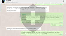 如果有人通过 WhatsApp 和 Line APP说服你进行交易,绝对不要将资金转入个人账户!!在交易时,有人会通过聊天引导你,他们可以定制市场图表,让你相信自己已经赚了很多利润从而说服你存入更多的钱。前两次你只小额提现,之后你就不能再提现了。所以我在这个交易商那里损失了很多钱,请小心并相信我!
