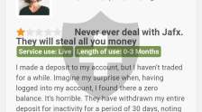 由于交易不活跃,客户的所有余额都减少到零。他声称JAFX偷了他的钱。
