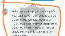 我开始投资 800 美元并赚了一些利润。我想出金时,他们说要再入金10,000 美元。我卖掉了我的房子并存入了 12000 美元,然后又要缴纳 35% 的税,当我再出金时,他们禁用了我的帐户。现在我无法登录,我的钱被偷了,这个网站是个大骗局。请不要像我一样在上面投资。