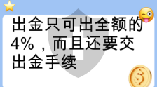 出金只可出全额的4%,而且还要交出金手续费,这样算下来莫说出金的钱还不够交手续费,这是变相要挟出金!希望大家远离这种坑人的平台!