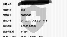 到目前为止,我已经分7次存入了约1,910,000日元,并且已经能够提取3次约260,000日元,但转账目的地中出现了泰国名字Nguyen,这似乎表明欺诈的可能性很高。