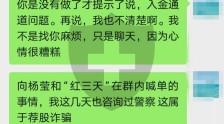 晋峰金银业涉嫌诈骗,资金进入私人账户!2018年,杨莹在股票群内引诱开户,红三天开直播讲课,之后以喉咙不舒服为由不再讲课。还有自称为投资者的人祝福红三天老师保重身体,在群内喊单。每次亏损。现在回想,全是假的。