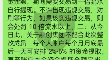 一:从今日此,澳博会进行全面核查,核查期间,每一个账号保留本金余额,期间需要交易到一倍流水自行提现。不许出现违规交易,对刷等行为,如果核实违规交易,则会处罚10倍流水以上。二:从今日此,关于融创集团不配合此次整改成员,每个人账户每个月月底最后一天可安排2%-6%的资金提取,直至账户本金资金提取全额完毕。具体每个月资金提取额度取决于该成员对于澳博的态度。