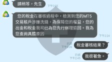 在九月中,交友网站认识一女以及引荐她的叔叔徐XX(因为尚未确认真伪,所以名字先保留)。鼓吹投资理财,一起投入资金,操作MT5,主要操作金融商品是ACEUSD。跟着她叔叔进场出场,获利很可观。直到我出金累计到3000美,就被通知要缴税金,配合之後,又被通知资金流向有问题。後面女才说她资金有一笔是朋友资助,是黑钱,她正在报警处理。而我向客服讨香港金管局公文,看起来不对劲。我写信问香港金管局,金管局说是没这回事。显然是遇到诈骗了。我跟那女要她报警的报案单号来证明她不是诈骗一员,但迟迟不给,也渐渐不回应。我要去报警备案了。