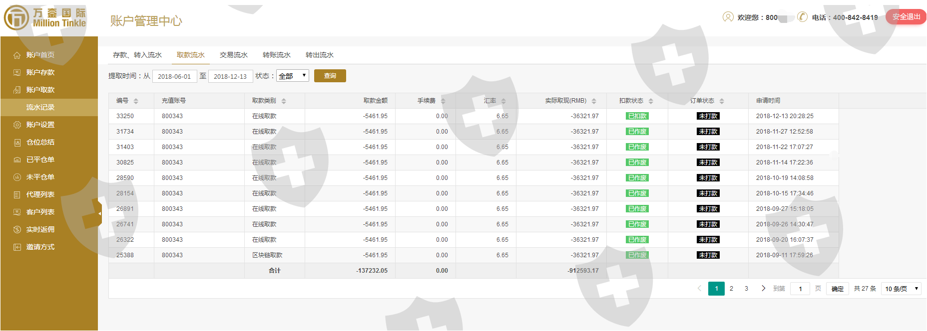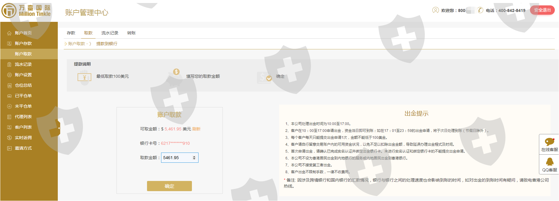 无法出金