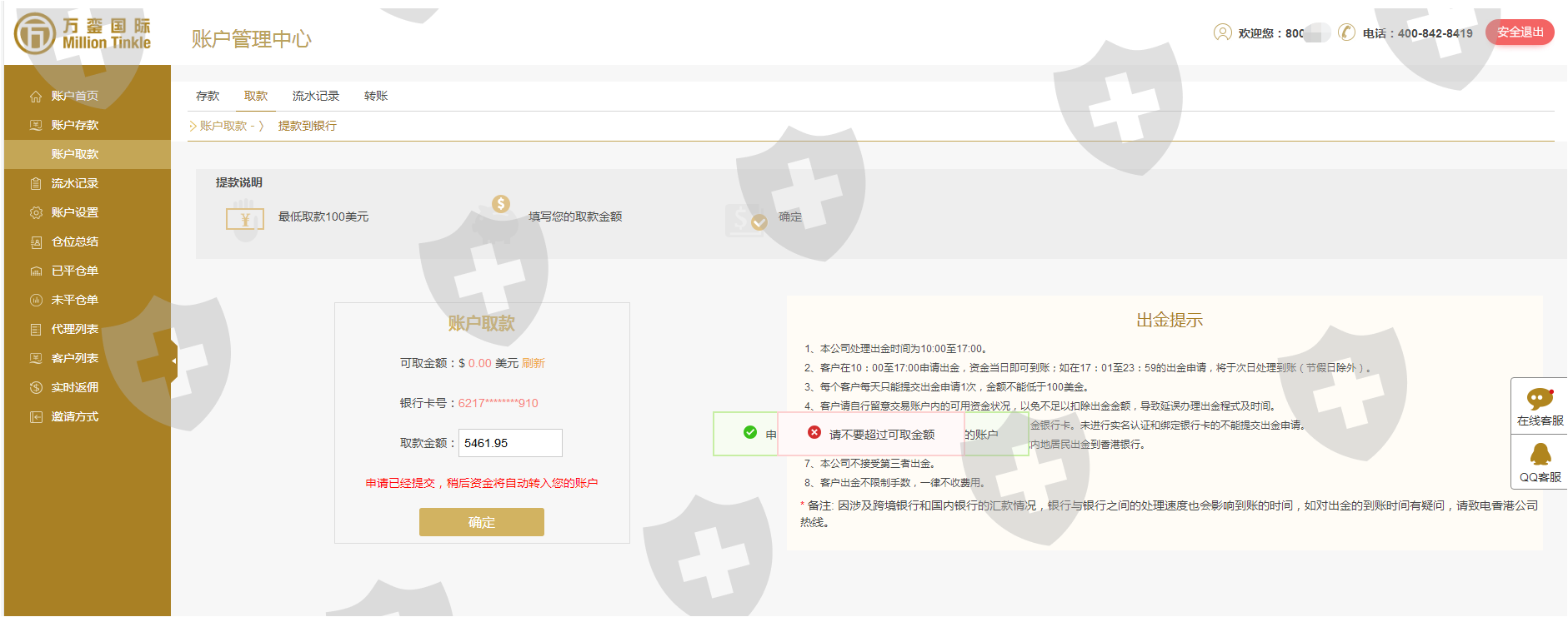 无法出金