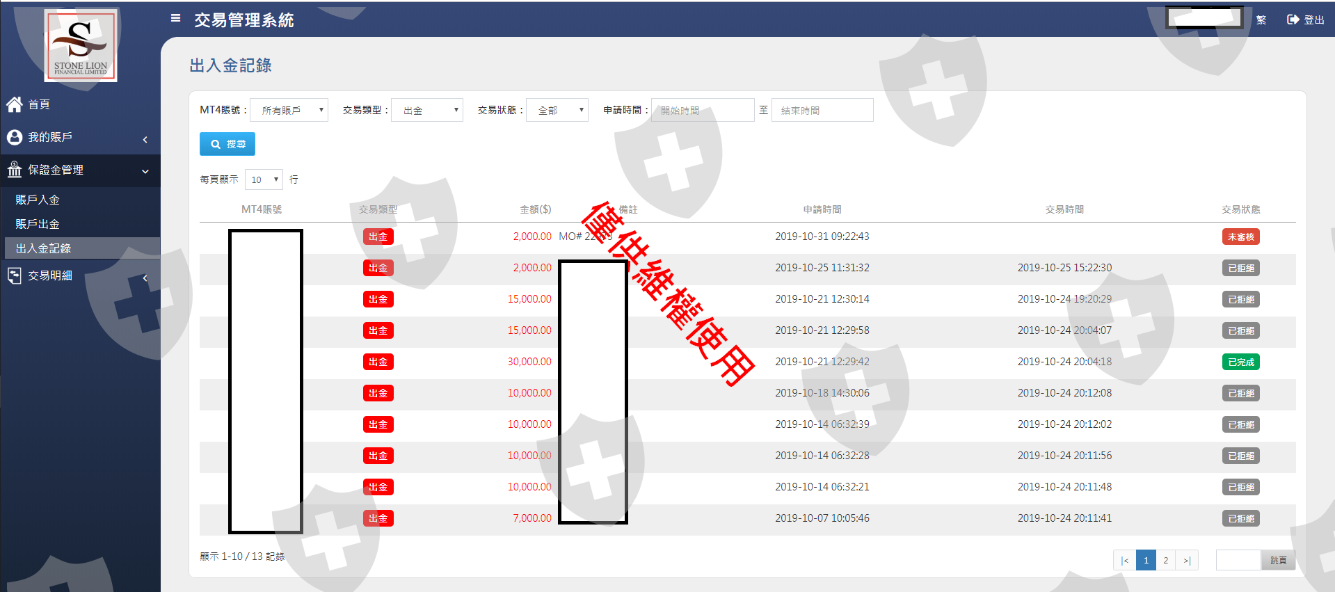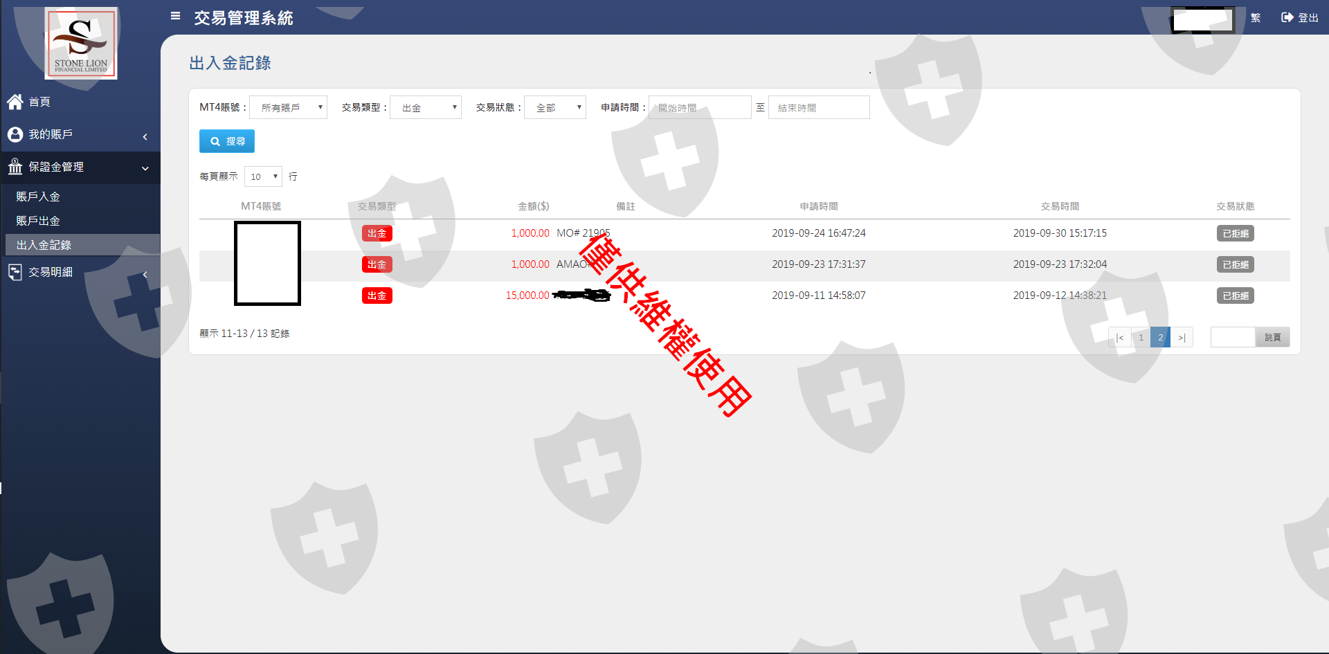 Stone Lion 無法出金