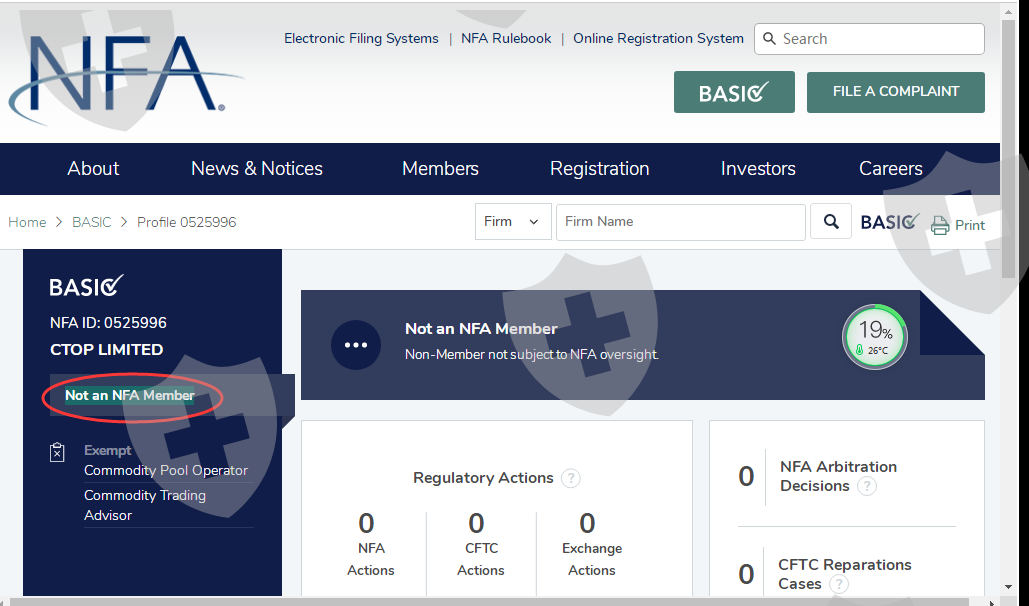 没有美国期货协会监管的一家中国注册的公司并且没有中国工商信息;Not an NFA Member(不是nfa成员)