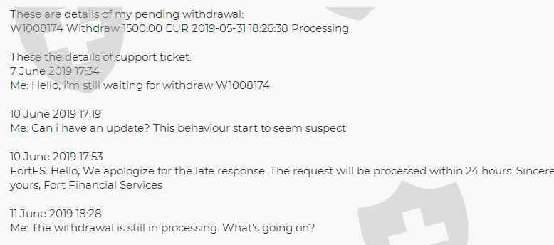 我5月份提出的1,500欧元的出金要求一直未得到解决。我已经跟他们联系了几次以跟进我的请求,但是系统不支持出金,一直显示他们正在处理请求。然后被通知他们正在进行某种“系统维护”,这种维护似乎永远持续下去……我想我的钱已经没了。