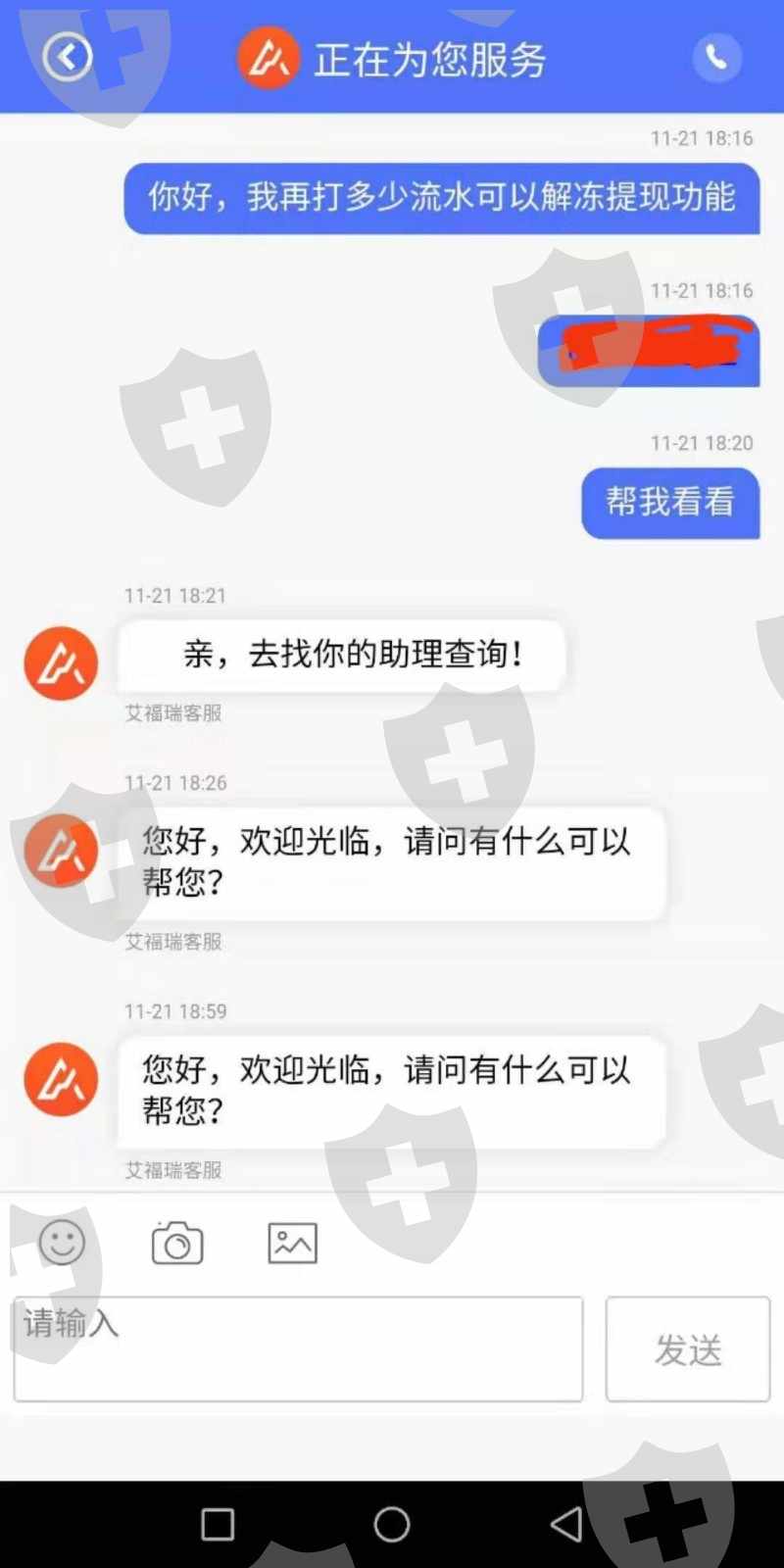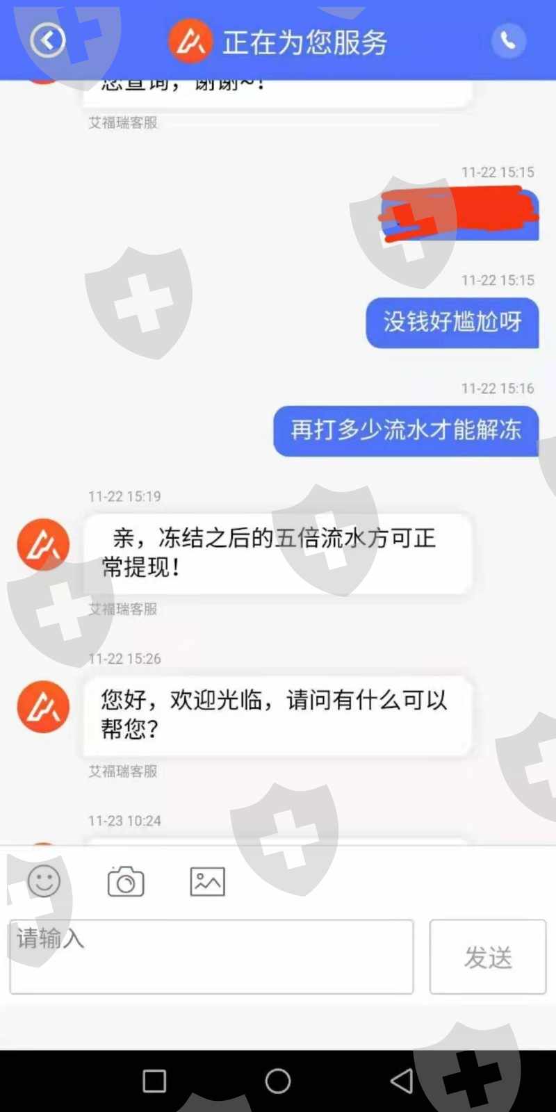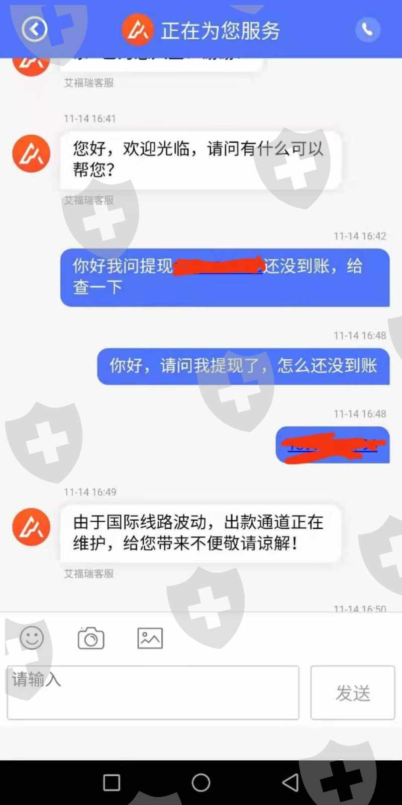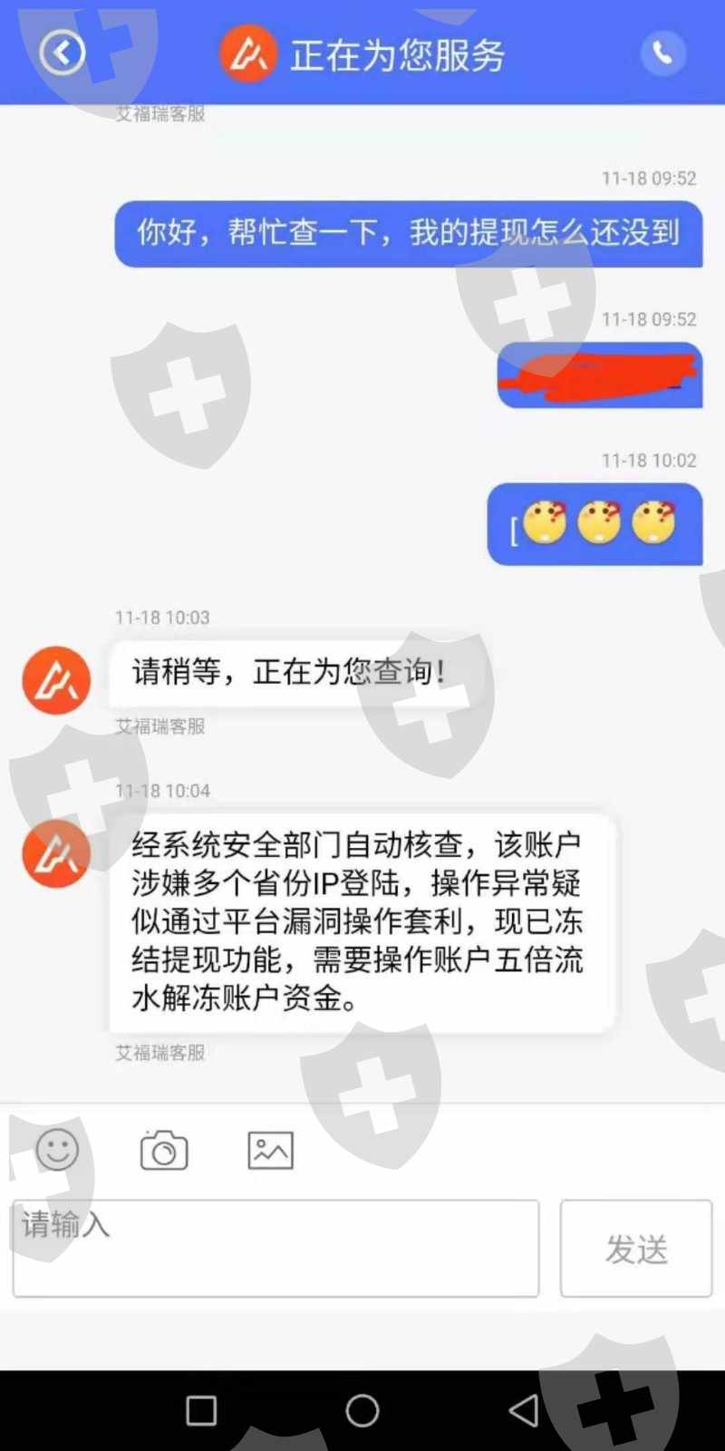 2019年10月25日开始入金操作2019/10/25入金500 2019/10/29入金3000 2019/10/30入金5000 2019/11/11入金39000 2019/11/12入金30000 合计77500元整跟着指导操作目前账户511544元整。2019年10月31日出金9500通过,2019年11月14日提交出金审核未通过说是银行维护国际通道被拒,后面再提交出金就被拒,下面截图就是18号让打五倍流水,给了流水后又让我打20%的资金证明,不敢打,怕打了都出不来了,截图大家看,,还有的图片截不了