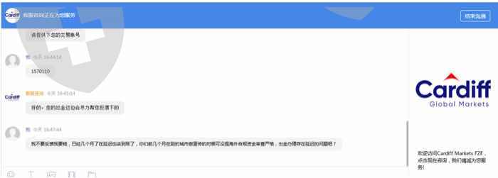 本人9月份申请的提现两个多月未到账,平台频繁更换网站,几经周折找到后按照提示重新申请提现,问客服几个工作日到账,客服回答令人气愤,不给明确日期,更可恨的是我妹也是按照流程重新申请提现,但是只能登录到佣金账号不能登交易账号,和客服沟通后发三遍交易账号客服说未收到,然后把聊天界面关死不在接收消息,所有的交易者的登录设置都是由她们在后台操作,哪怕你上来申请提现了但是什么时候到账是个未知,这边在这个省那个市的推出扶持政策,那边坑骗正在交易者,中国老百姓醒醒吧别在被这个打着英国监管旗号的骗子蒙蔽了,你们丧尽天良我弟弟在医院住院交不起住院费,我这边苦苦哀求你们无动于衷,我要的是自己的本金你们平什么只进不出,天理何在,你们有什么脸在中国继续行骗,我相信肯定还有和我一样的交易者被骗https://broker.cdfmarkets.asia/这个是她的新网址你们可以找客服咨询,不过结果应该和我差不多,聊天一定要截图,不然她们会截止聊天画面,