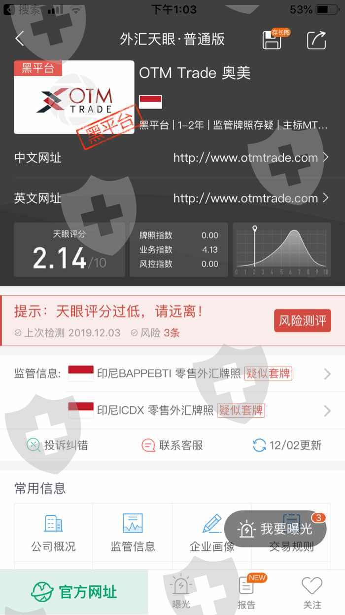 特别提示,天眼投诉所列信息仅供参考,不构成投资建议。外汇平台由客户自行选择,平台操作带来的风险,与天眼投诉无关,客户需自行承担相关后果和责任。