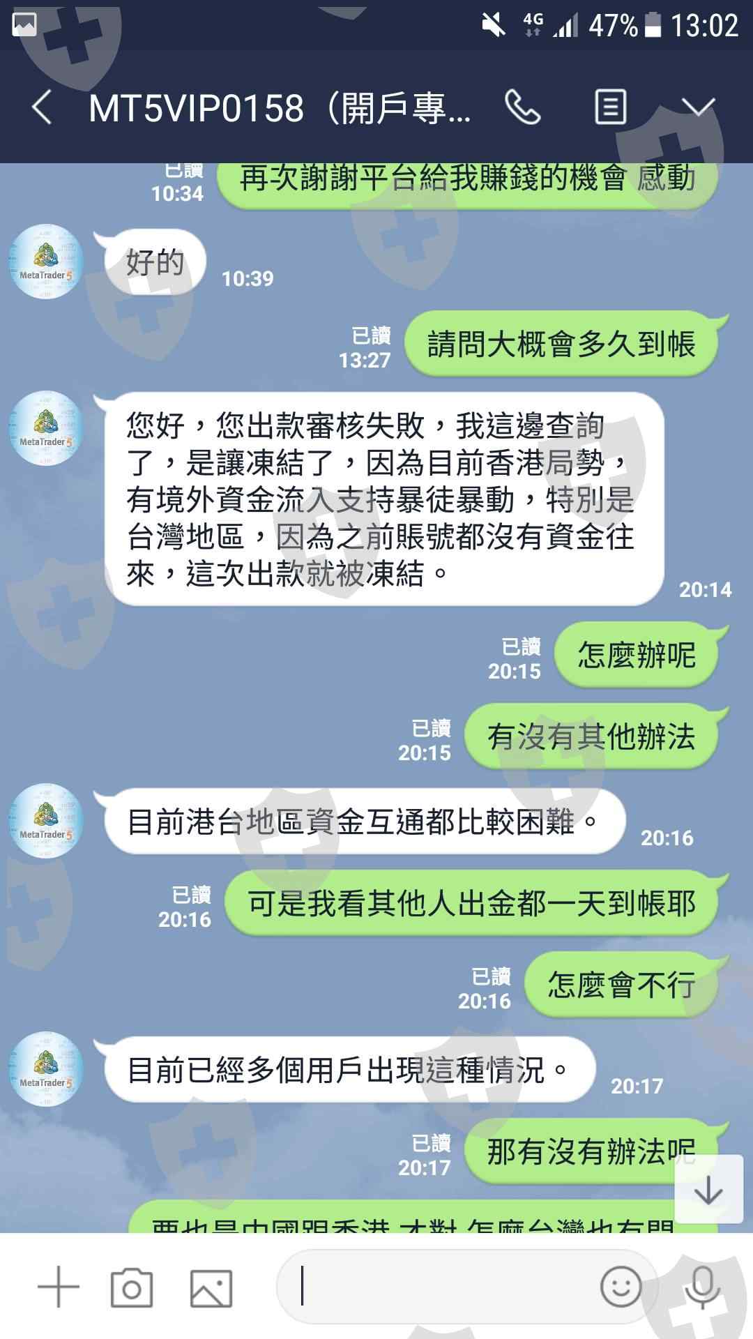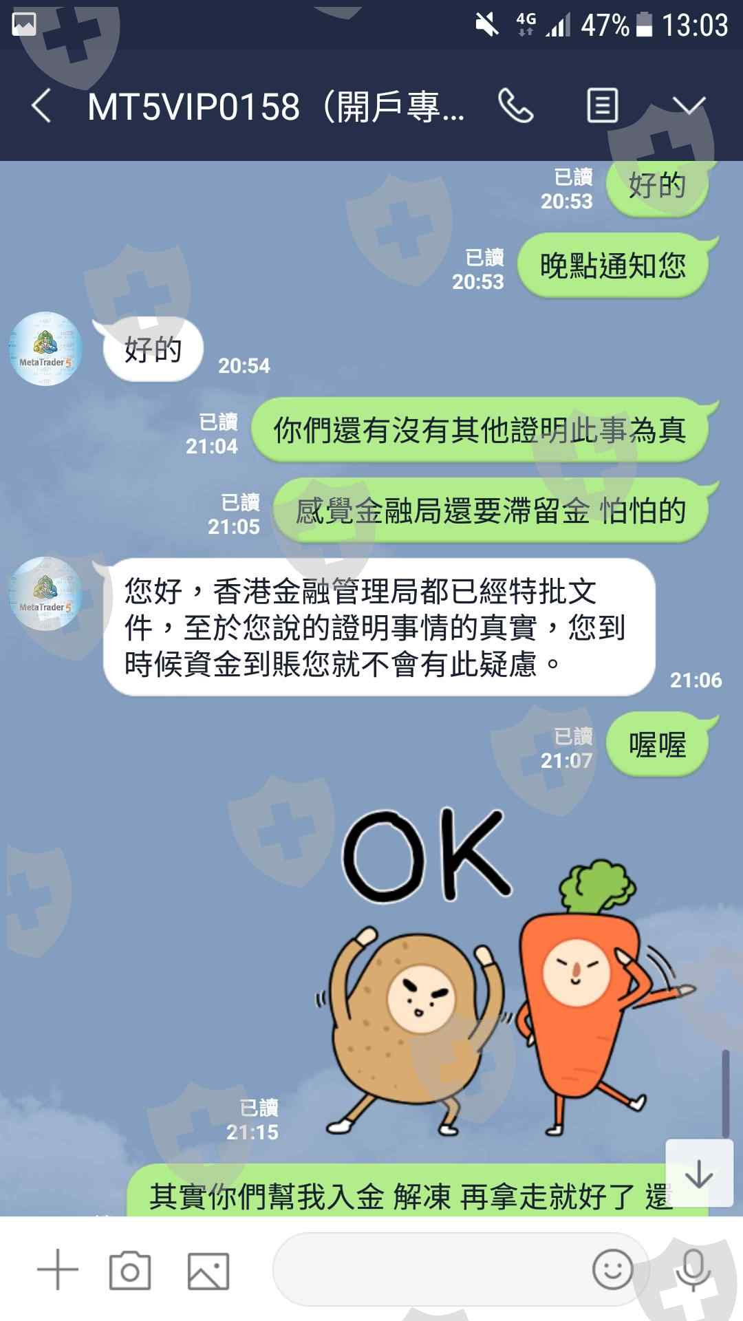 11. 最後出金用香港金融管理局打擊出金海外為由將你的帳戶凍結,號稱要以出金總額百分之一為保證金來解凍才能出金。再次騙你上當入金
