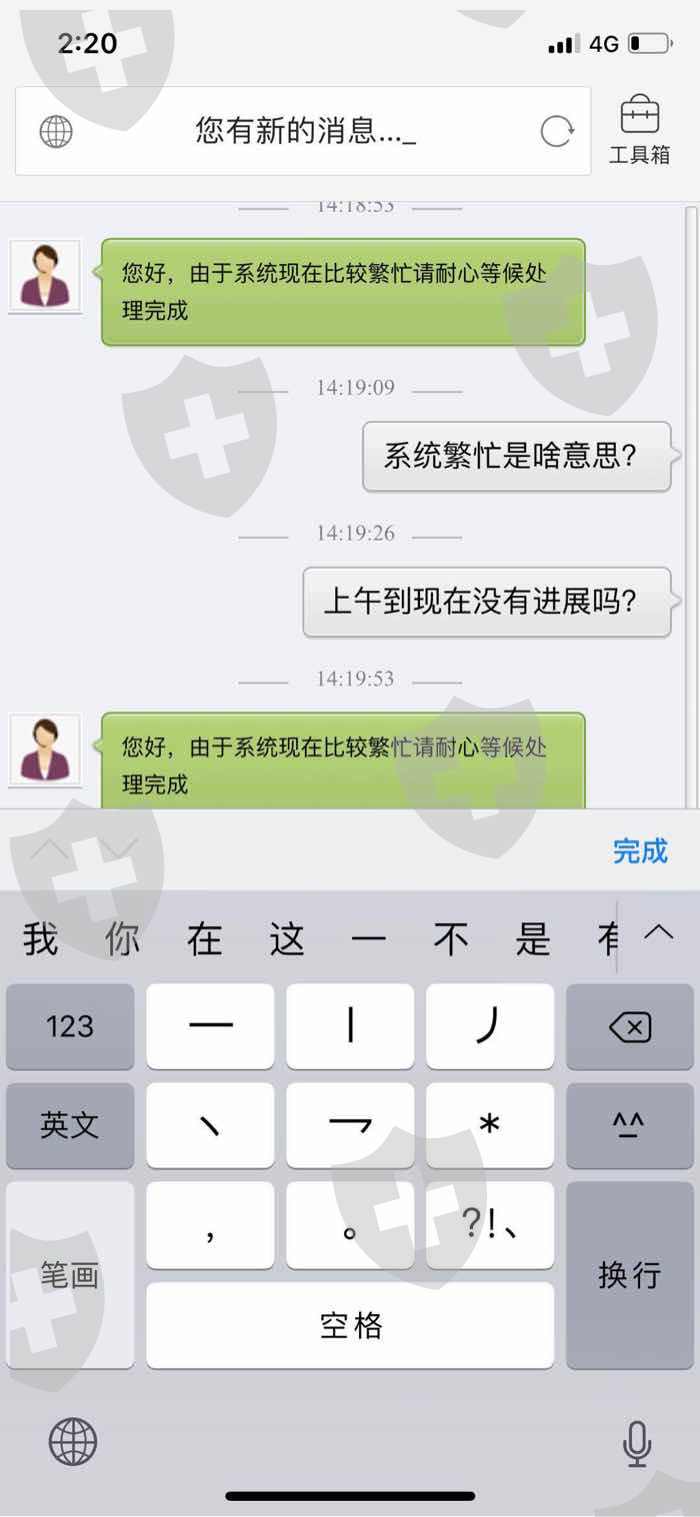 11月29日提现,以各种理由交纳费用,12月2日交费完成,一直不予汇款,多次询问客服后,直接给拒绝联系。现在无法联系,帐户提现已通过,但就是不到帐。