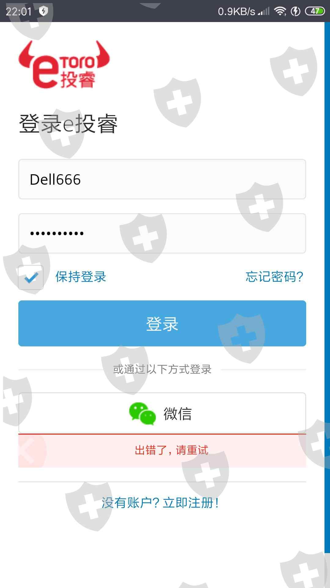 今天刚入金 突然无法登录账户 总是提示错误 ,,,完全是黑平台 强烈要求监管机构 取缔黑平台