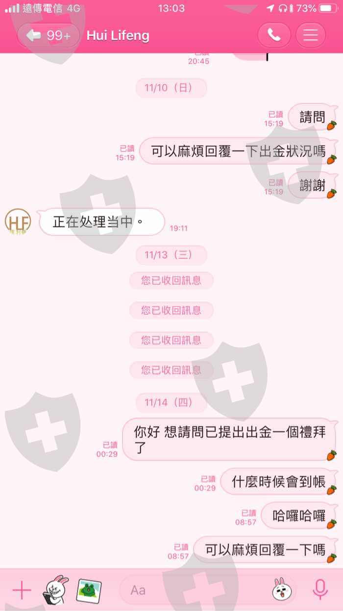 要入金的時候客服就會出現 回覆訊息很快說要出金 客服就說系統處理中 遲遲不回復 還已讀不回 最後完全消失根本被詐騙