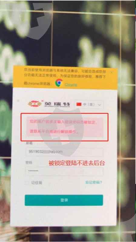 11-29号说提交的佣金能到账,2号说财务忙等3号能到账,3号上午说通道有问题要4号上午才能好,肯定能到账...5号联系没有人回复了...9号上午登录后台一次显示已审核,还是没有到账,下午就登录不进去了……请大家注意英瑞特这个平台是个黑平台,入进去的资金根本就出不来!!!
