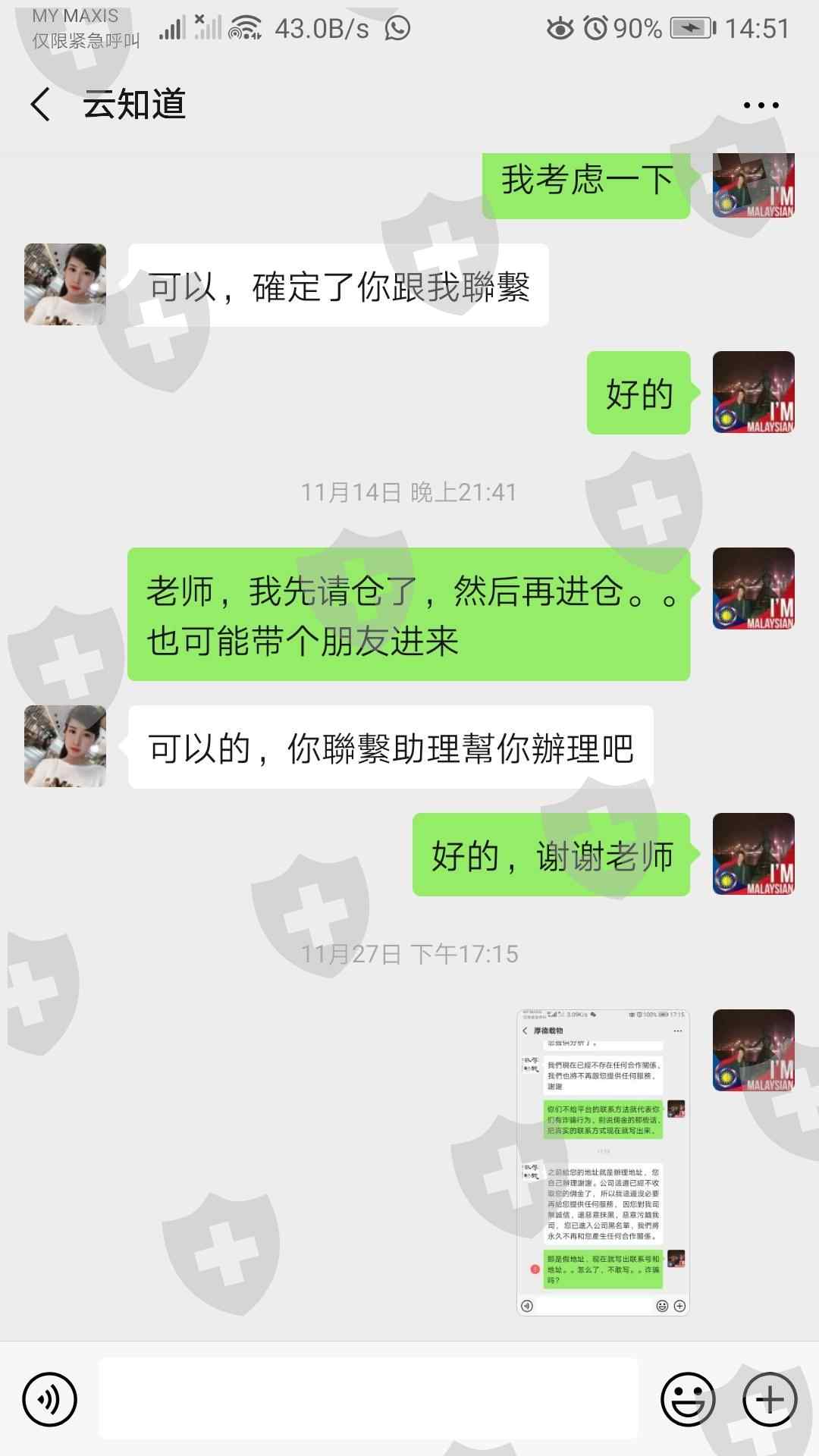 这个黑心平台被无良经纪人利用骗钱还威胁要付佣金才处理出金,其实这是一个圈套,在网上找了很多类似的案件知道如果付了佣金就被拿很多借口导致不能出金,其中一个老千的微信已换了名放女孩的照片名叫(云知道)知道被骗,可是也不能不明不白的给他们。