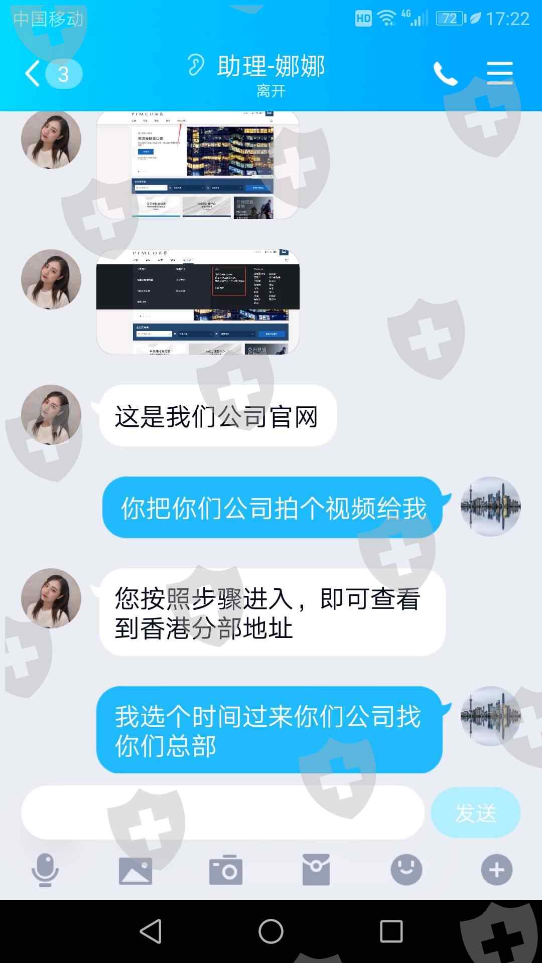本人10月份左右接到一个电话,说是香港品浩投资管理(亚洲)公司PlMCO准备组建个QQ群,在直播间讲解股票知识,推荐牛股等等。刚开始讲解中国A股股票知识推荐牛股,过了段时间说A股不好做挣不到钱,分析师带我去另外一个平台挣钱,就是GOKEX EX平台,刚刚开始抱着试试的心态入了2万。每次操作分析师陈启明都在QQ群里发点位让我们买入,刚开始自己的资金也不大也挣了点小钱,每次盈利要分3成利润给品浩投资公司,助理娜娜发一个中国的账号让我们把分成转到这个账号。后来助理娜娜和群里的人都说要挣大钱让我们多入金,前前后后我一共入金了60万人民币,11月3日那天分析师在群里让我们买入,结果这天爆仓了亏损人民币70万(美金10万),后来才听说此带单操作是骗局,GOKEX EX平台也是虚拟交易平台。香港品浩投资管理公司PlMCO是正规公司并在香港证监会注册,本人打电话到他公司把受骗经过和他们讲了要求赔偿,现在他们根本不接我电话了。