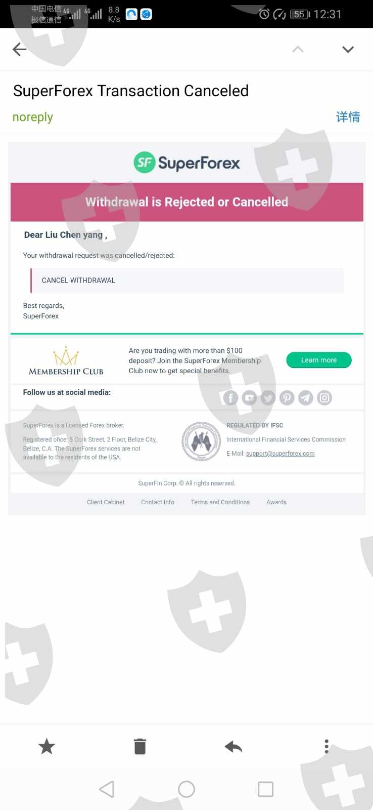SuperForex无法出金曝光