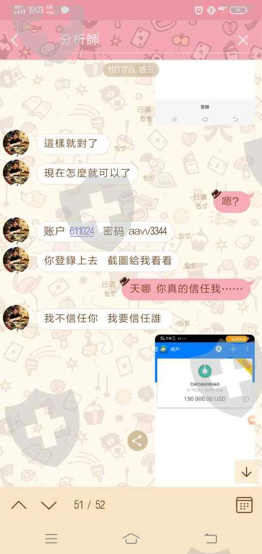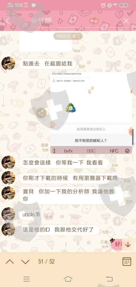 這些人是一個龐大的集團,先透過臉書等網路平台噓寒問暖很多天後,再假借因為工作忙碌擔心錯過行情詢問是否可以代為操盤,並表示會有專業分析師協助操作。目的是為了讓人看到此交易模式的高報酬。在操盤一些日子後,就鼓勵受害者自行開戶。從代為操盤開始,詐騙方就是提供假的二維碼讓人下載他們偽造的MT4,APP因為高度神似,非常容易誤信。甚至透過二維下載後,正規Google Play商店竟也會顯示已下載。
