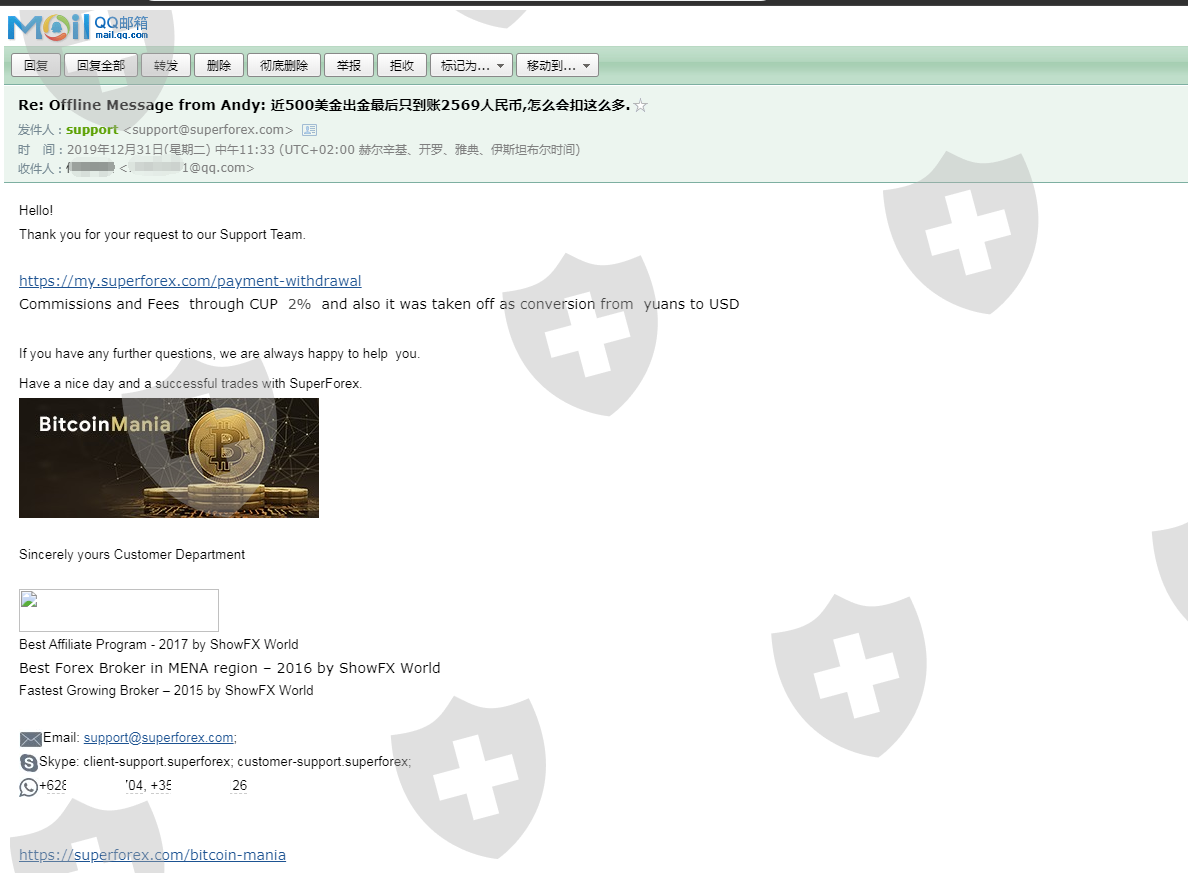superforex.com盈利部分无法出金,收取高额出金费用.