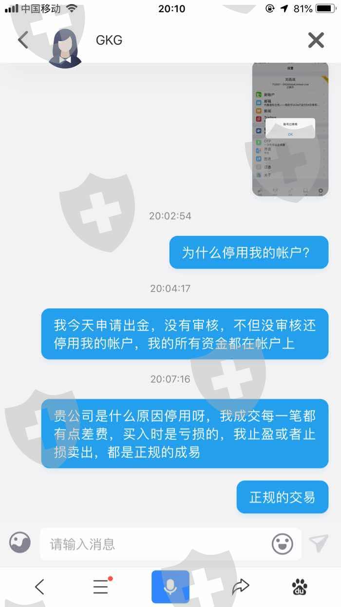 GKG无法出金 不给盈利 恶意诽谤我使用非法软件还禁封我帐户,本金加盈利19100多美金无法出金