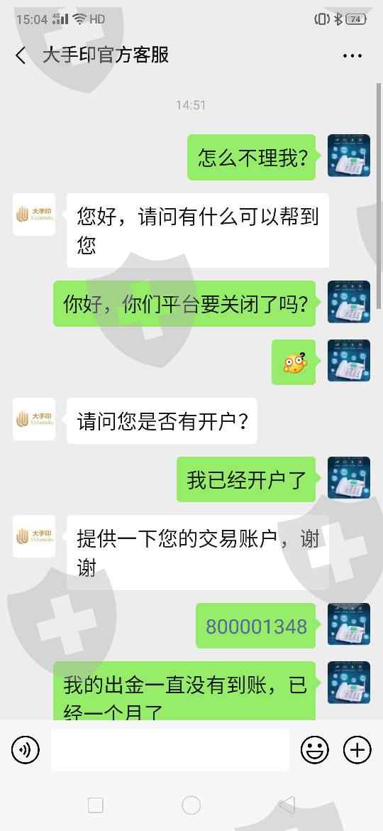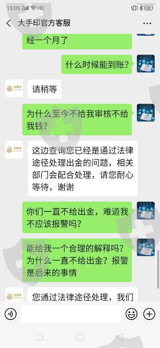 香港大手印国际有限公司非法扣留客户本金,不给出金