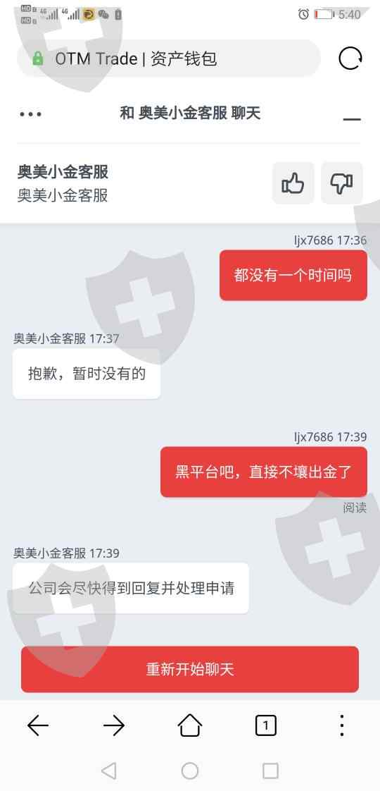 黑平台 ,无法出金 ,咨询客服直接关闭聊天