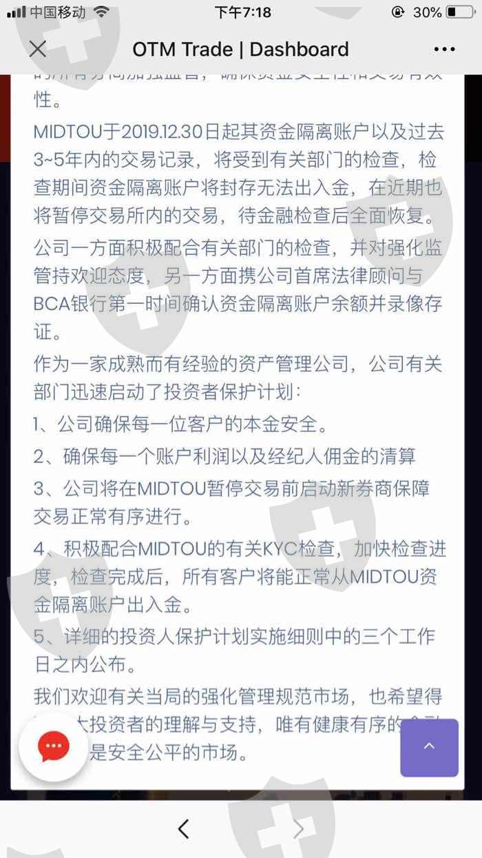 以普顿崩盘为理由说被MIDTOU券商冻结,无法出入金,现在没法出金