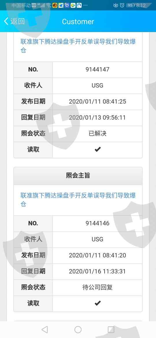 联准旗下腾达操盘手开反单误导我们也跟着开,还不止损,到现在不平仓,给公司反应也拖拖拉拉不解决,不为客服负责,不给解决问题,跟黑平台没啥区别!大家看看我发的照会差不多十次左右,每次都回答些无关紧要,或者不回复。我就发一个举例!有一个快一个星期了也没回复。