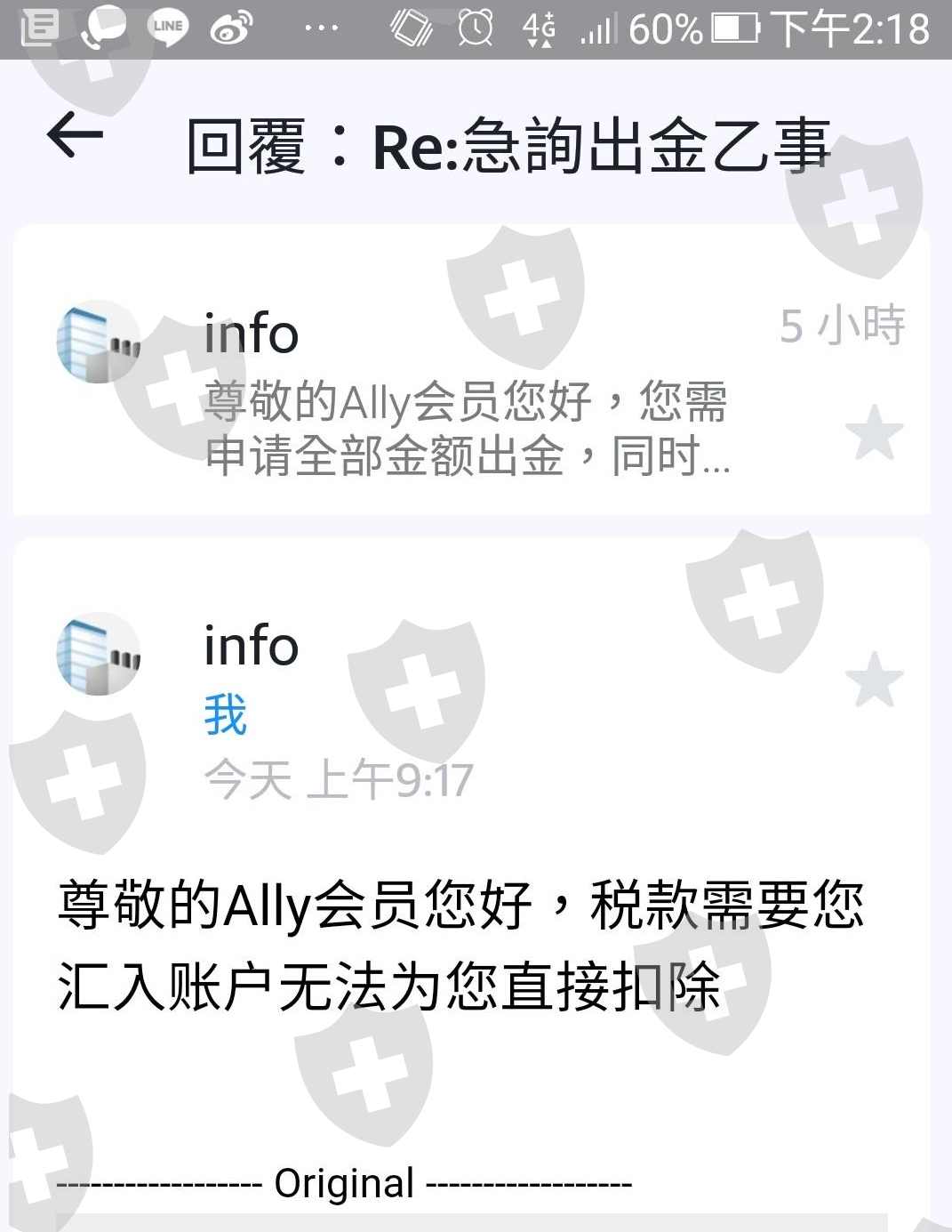 因年關急用錢、向該平台申請出金,拖延了快一個月,先以聖誕假期1月6號才上班為由,審核中…拖延,經再三催促才以帳戶資金凍結必須全數出金,且非住港人士必須繳納盈利所得稅(利得稅23%)才能出金,且不得由資金或出金款項內扣除,已違背正常外匯平台出金狀況。