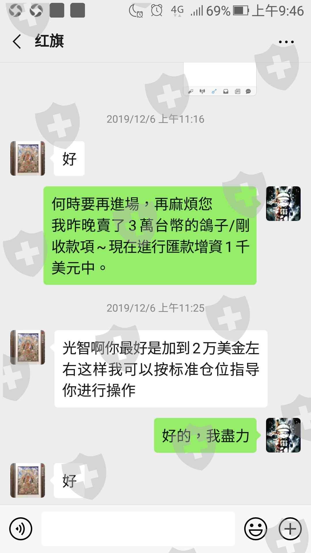 先由一名自己來加友的朋友,女Yuki(自稱:林資,在販賣紅酒的代理商,由香港遷往深圳開設紅酒餐廳會所)在認識一陣子時閒聊中提及投資事宜,並且要本人餐飲技術過去幫忙經營餐廳,然後介紹其伯伯指導老師:孟德~,認識後由其指導獲利的成果,鼓舞加入上述平台,先由小資金做起,帶二天後即停止指導,再鼓吹加倉資金才不會有波動壓力,先說二萬,帶一天操盤後即停止指導,鼓勵加入學員群參加【年末千點翻番計畫】