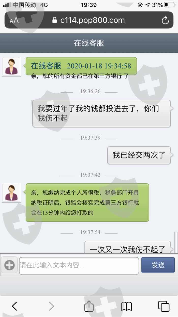 出金的时候第一次说银行卡号错误叫交钱改,第二次说信用分不够要买信用分,第三次又说激纳个人所得税,钱都交光了不出金啊!
