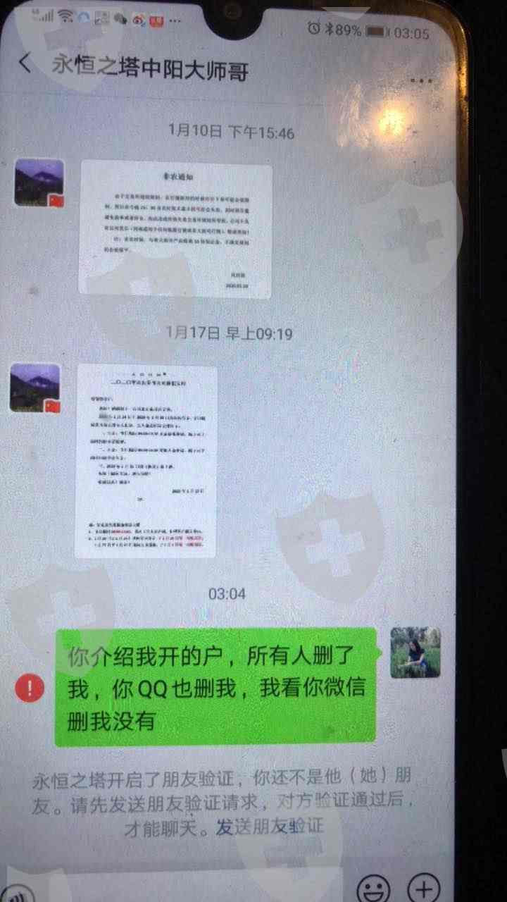介绍我开户的删了我,然后一直冒充他们在香港,是中阳控股总公司的技术人员也删了我,软件时常登不上,开不了仓,用的是春之舞软件,骗子骗钱,让我凌晨三点还睡不着,每次我爆仓在最高最低,让打交割单,一直没打