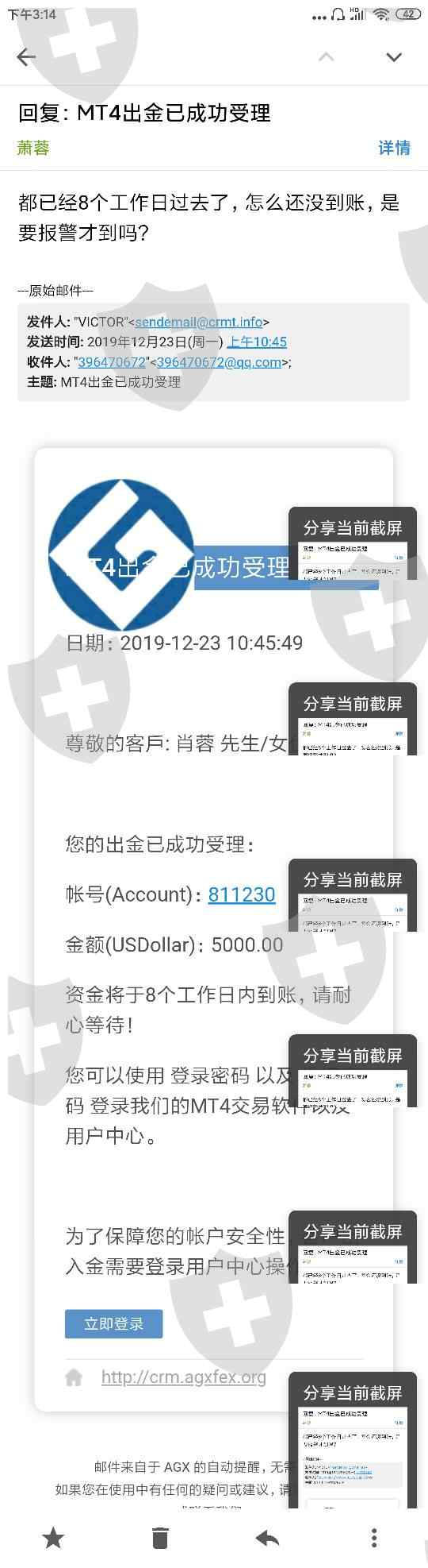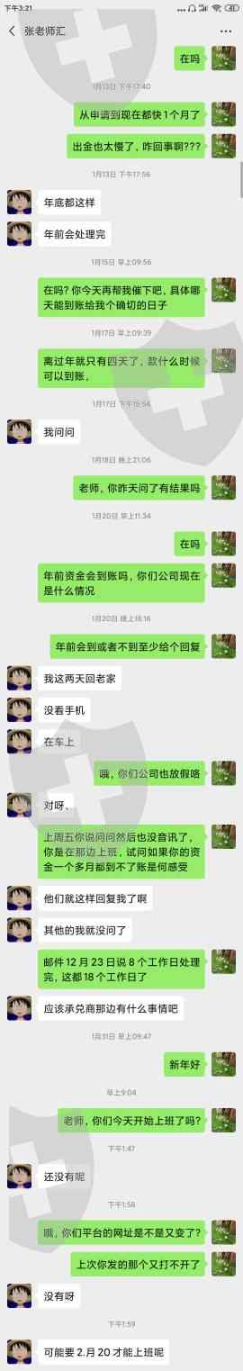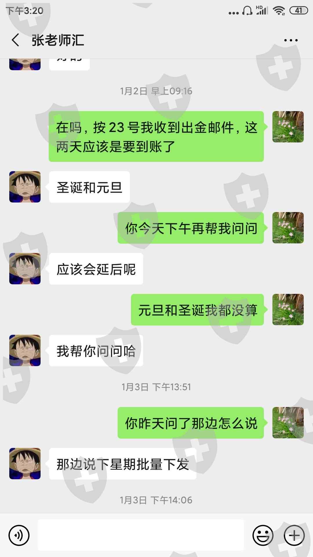 2019年12月18日申请出金5000美金,12月23日收到同意出金的邮件,上面是说8个工作日到账,但是2020年2月10日还未到账,我在2020年1月16日回复出金的邮件也没有任何消息