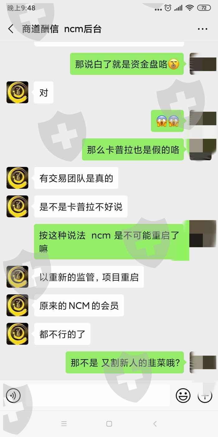 所谓NCM 卡普拉 已经确定是骗局!国内几个人分了我们的钱,并且事情发生第一时间,就开始阻止报警,维稳我们!他们迅速解散全国各地的群防止我们组合到一起!