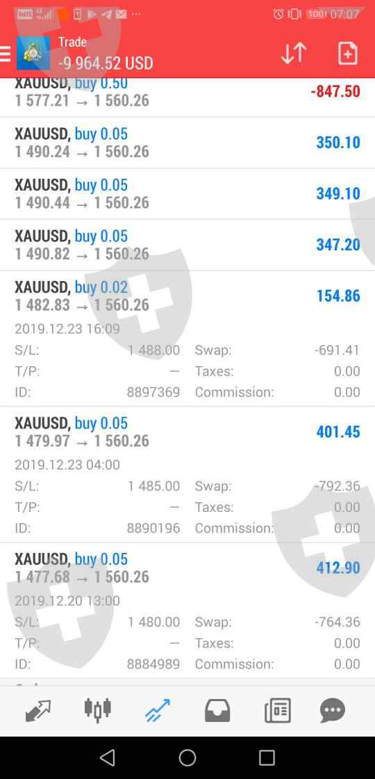 我账户里的隔夜利息很奇怪,可以看见0.05手的单子的隔夜利息将近即几千美元, 无缘无故被扣,希望 111 负责。这已经是第二次了(两次时间分别是2020年1月8号和16号),我还录了视频作为证据,但这里不能上传。
