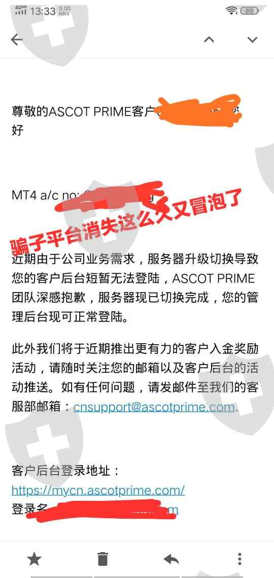 骗子平台,svsfx倒闭后,让转入这个平台,后来不让出金svsfx倒闭后,让转入这个骗子平台,转入不到一个月就不让出金了,代理账户也不让出金,之前联系半年没人回复邮件,客服全部消失,2019年12月份又突然发个邮件,看了下代理后台,佣金还是不让出,交易账户总是掉线,点差过大,骗子平台
