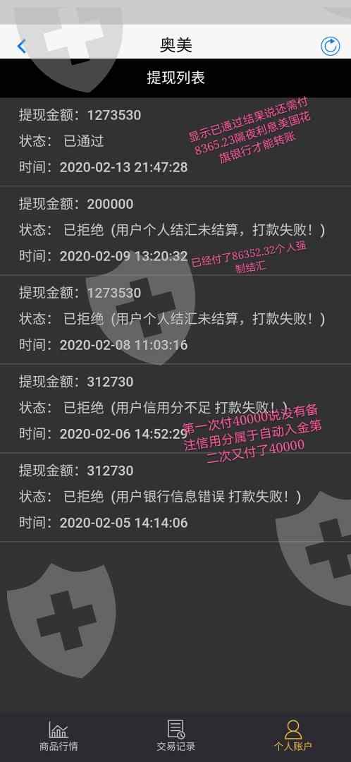 投诉奥美国际外汇交易平台,联合代理,数据老师忽悠高额回报,平台恶意修改账户,并以此为由骗取信用分,各人强制结汇,隔夜利息等高额费用,以下是代理朋友圈发的忽悠纪录和平台APP样子,千万不要上当,都是假的,我是受害者已被骗20万