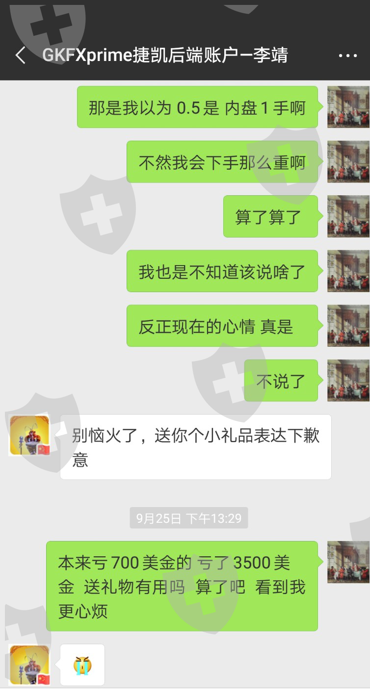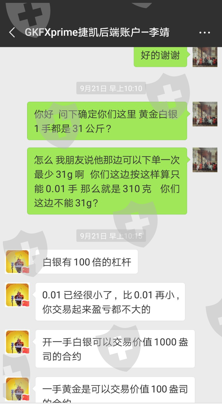 下单前问过客服(是捷凯公司分配给我的专门服务人员,有加微信,其中文名李靖, 英文名peter )一手白银是多少盎司,他跟我说1000盎司,本来只想下单两个0.1手的我 被他害得下了两个0.5手,结果后面平仓割肉亏了3500美金 。 扛单期间还找他又问一次白银一手是多少他还是说的一手1000盎司。在我清仓割肉后,有一次无意间跟他交流才得知白银一手是5000盎司。本来如果我仓位轻,亏损少我完全可以扛得住一直到后面可以盈利,但是就由于这个客服的及其不专业,这个公司的不负责任不把员工培养好就上岗,害得我亏这么多钱。相关证据我都有聊天记录,然而跟这家公司反馈根本不理我根本不给我赔偿。