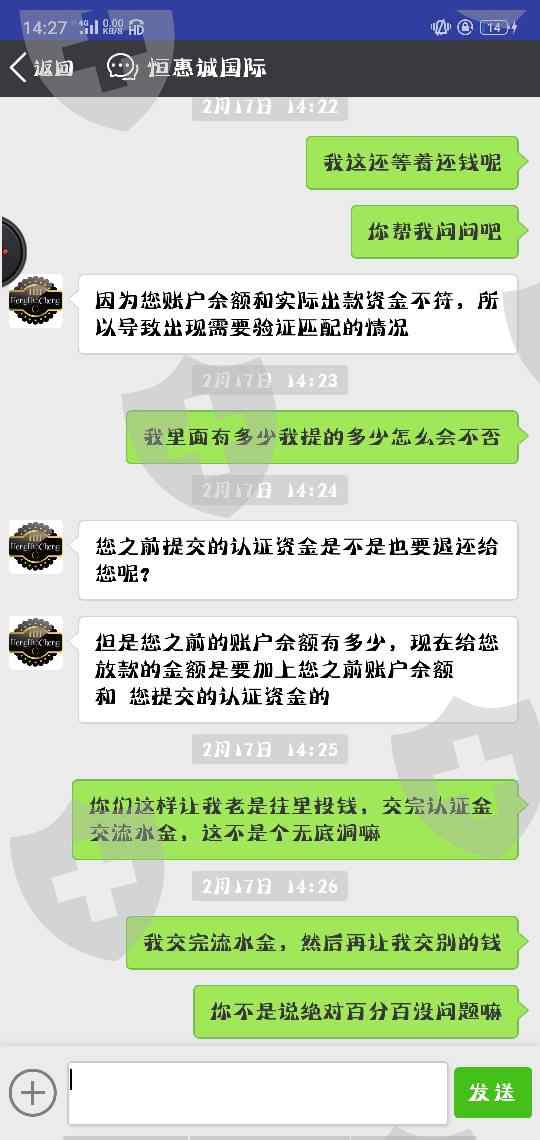 微信推荐人给的二维码下载的外汇套利平台,我是只负责往里投钱,微信推荐人给找的操盘手全程操作的,操作完微信推荐人让我去提现,结果就提现不了,平台客服说的违规操作属于二级风险账号需要交百分之二十的认证金就百分百可以提现,交完去提现又让交百分之十的流水金才能提现,又说是百分百到账,然后又跟我说不用交流水金也行但是钱要7-15个工作日到账,然后过了2 天平台就关闭了,图片上就是微信推荐人大骗子