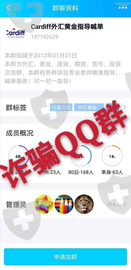 Cardiff卡迪夫黑平台 通过qq的形式在网络上面行骗 在它们自己的qq群里面洗客户诱导客户开户入金 里面的一个骗子叫田峰的 在里面喊单 田峰它用虚假的交易图来诈骗客户 入金喊单 然后你入金之后要就是爆仓它们吃你得亏损要就是不让出金!彻头彻底的一个黑平台!骗子田峰 !