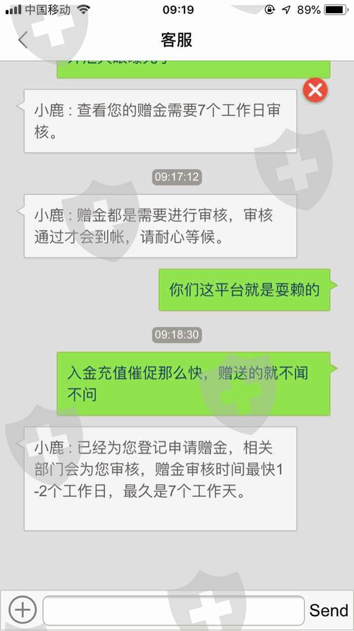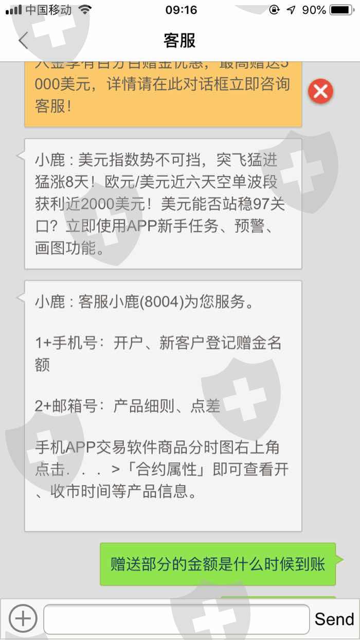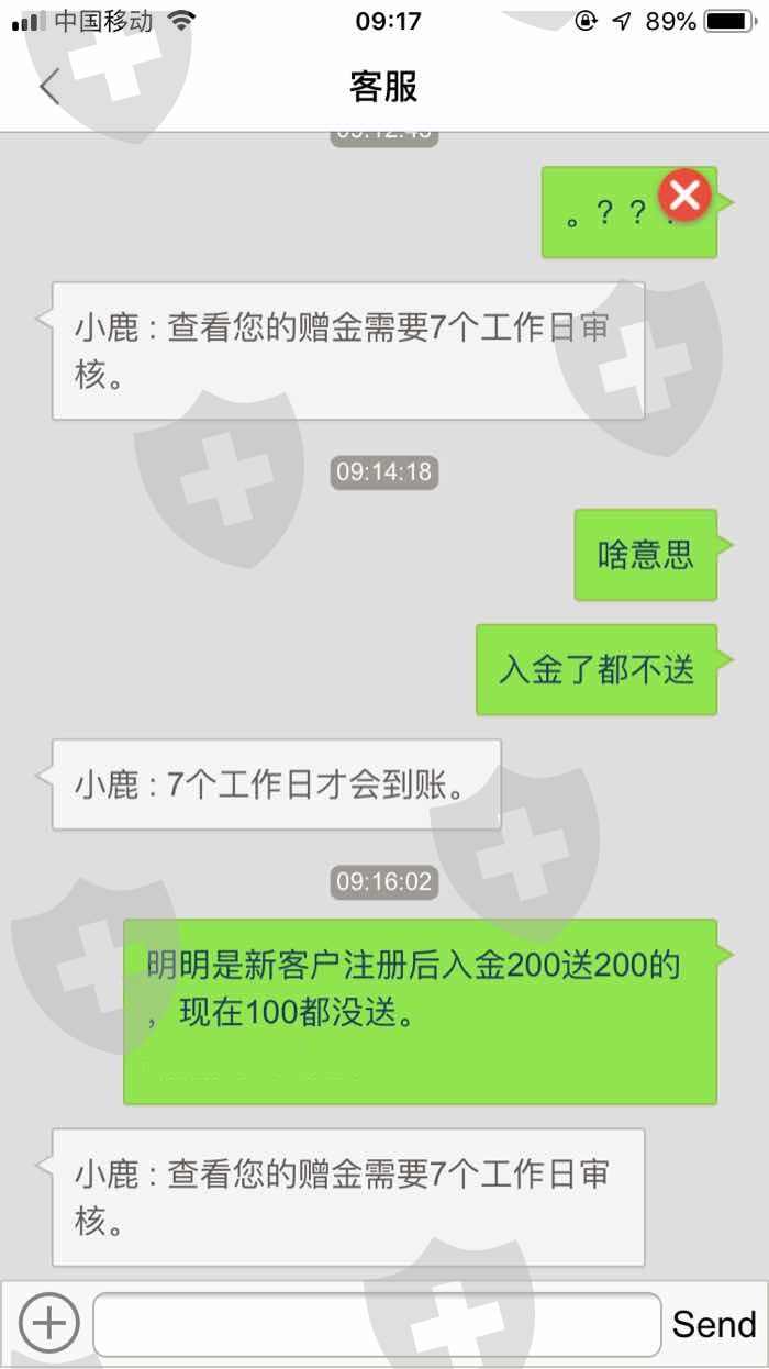 创富金融这个平台是比较耍赖的,按照他们宣传的入金200送200,他们是分下来送,而且是达到要求手数后才能赠送第二笔款。其次重大行情时段时APP无法手动操作界面转圈圈锁定