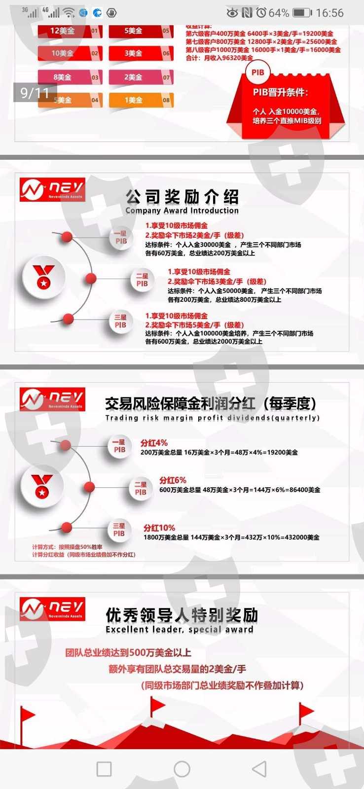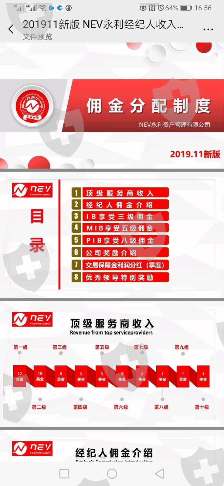 NEV永利资管利用传销拉人头吸血的套路。一直在市场上行骗!! 一句包赔保本的话术,骗取了很大一部分人的资金!经纪人拿着带血的动态奖金。投资者已经无法出本金!好在疫情期间老板无法跑路!所以出本金要趁早!不给就抓紧报警!!一起把那些传销骗子抓起来!!