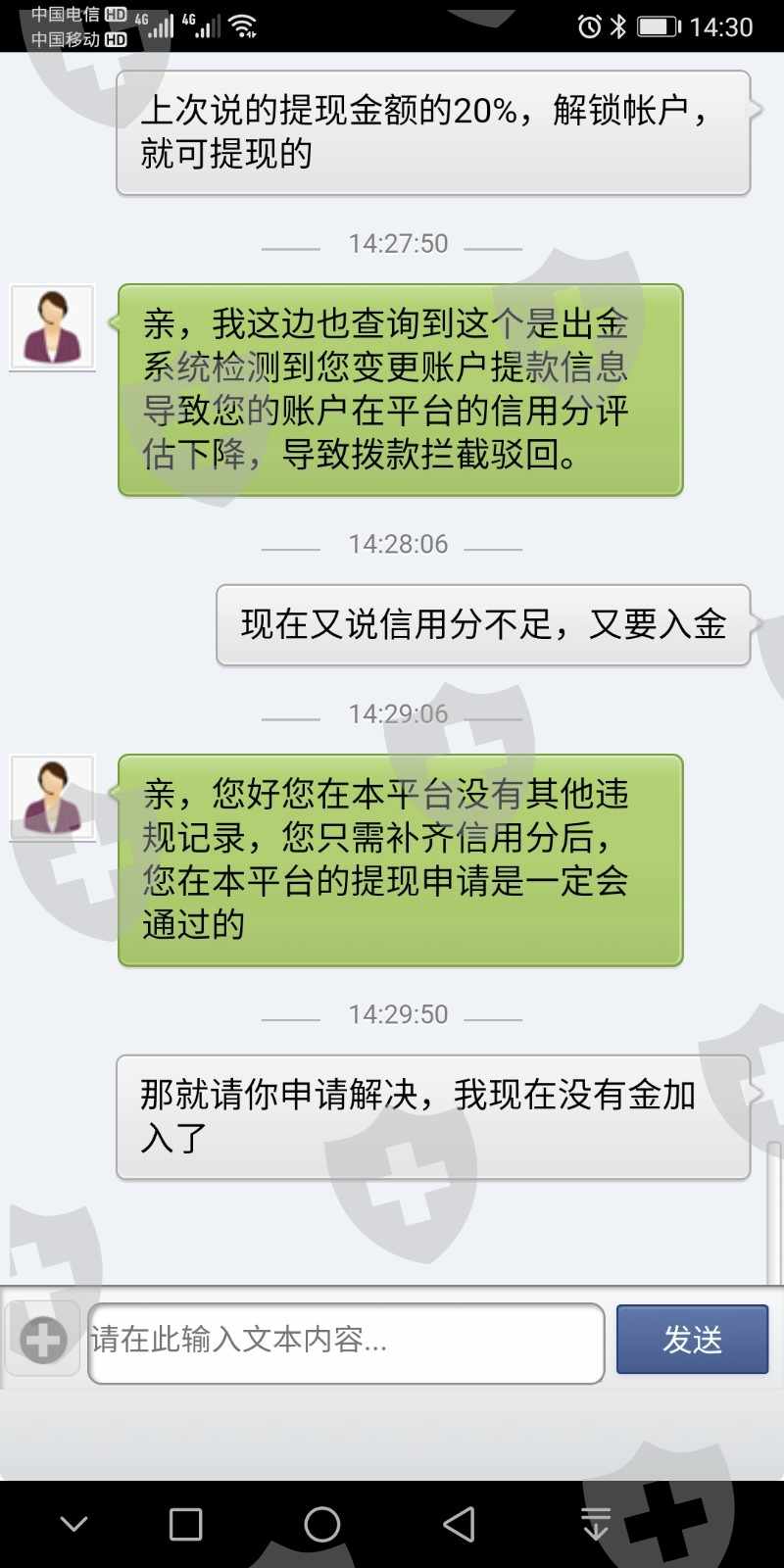 找借口不让出金,无法更改信息,改信息交账户金额20%的保证金,然后改了信息又说因为改了一次信息导致在平台信用分不足,说是只有60分了,说要达到80分以上才能可以出金,要入金一万10000才能增加一分,这就像钓鱼的网站套路。