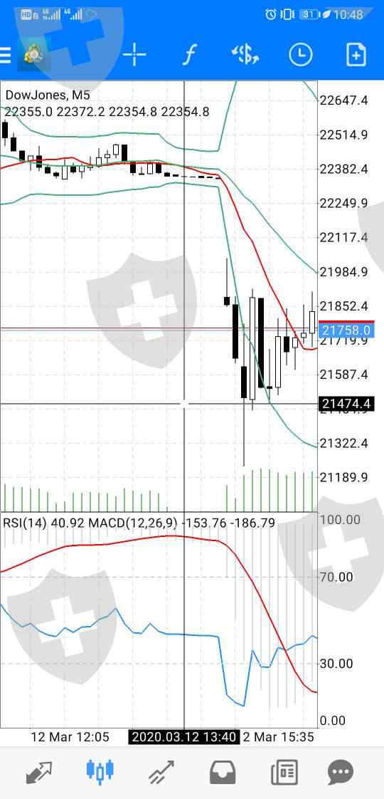 晚上九点半后直接爆仓,说是熔断,美国这个指数熔断是晚上九点半的事情,就算是熔断平台也不该给下实时单,晚上七点多到九点半之间一直还有20个点的轻微波动,就是不给设置止损(打开道琼斯指数的订单设置止损,却显示的是nzdusd的指数)。